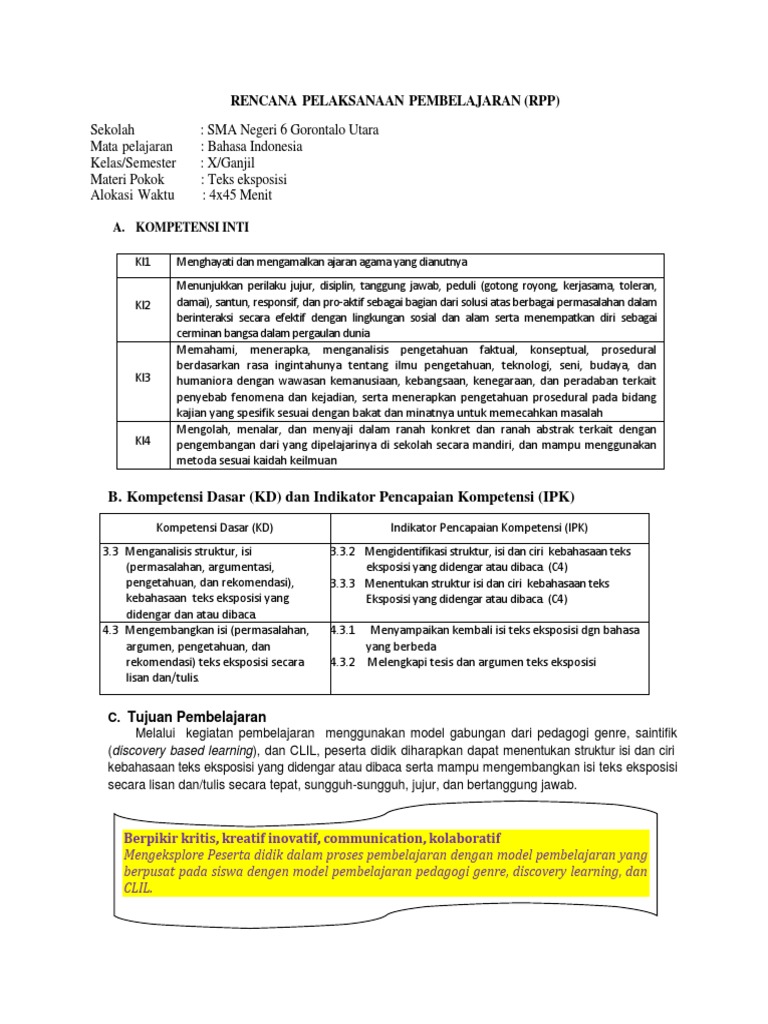 RPP 3.3 Teks Eksposisi