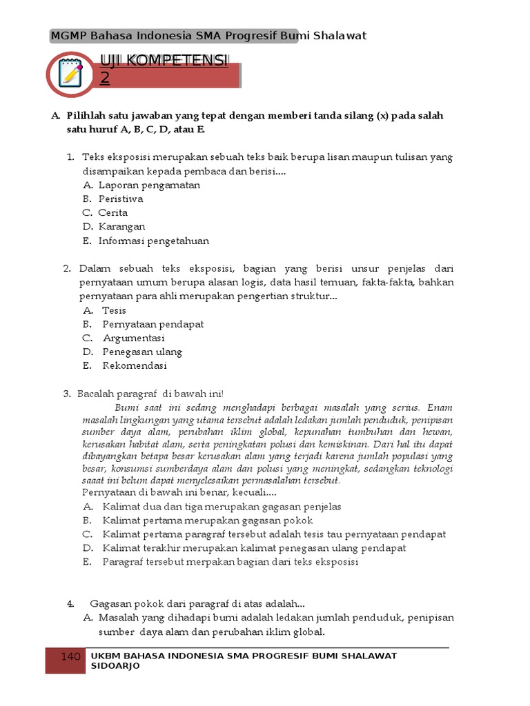 2. UJI KOMPETENSI 2 (Materi UKBM Teks Eksposisi)