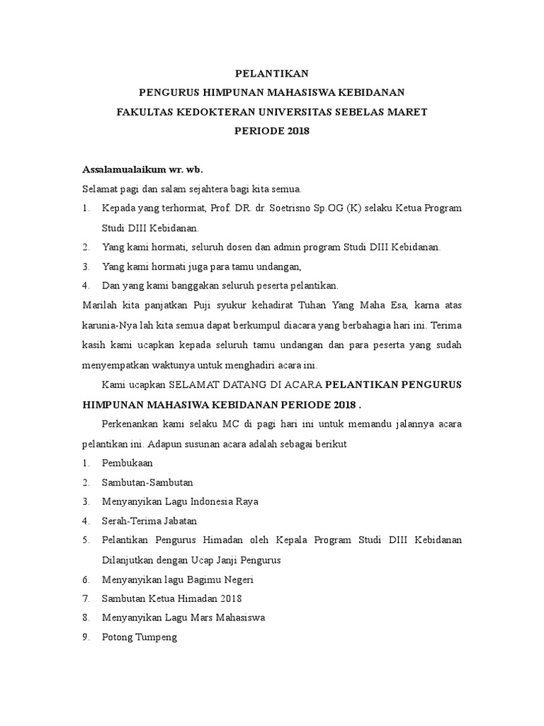DOC) SUSUNAN ACARA PELANTIKAN KETUA DAN PENGURUS BEM | Ratih IdaAyuu - Academia.edu