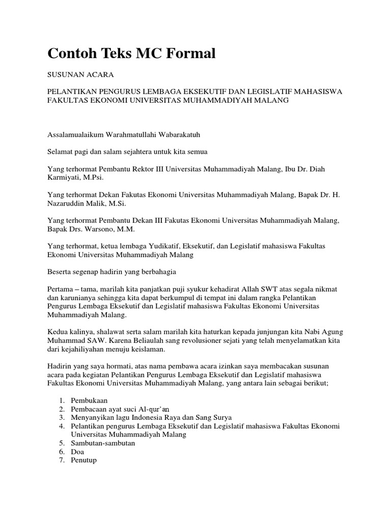 DOC) CONTOH TEKS MC WISUDA (UNISMA 2016) | Putri Saniatul Iklima - Academia.edu