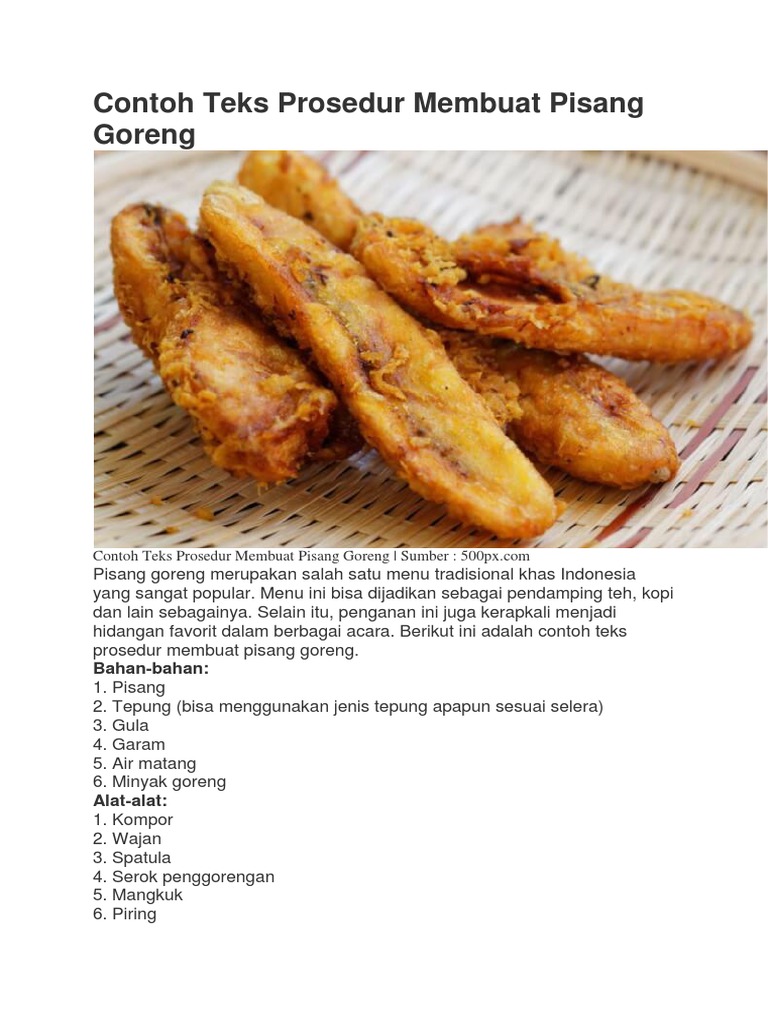 Cara Membuat Pisang Goreng Dalam Bahasa Inggris Indonesia Prosedur