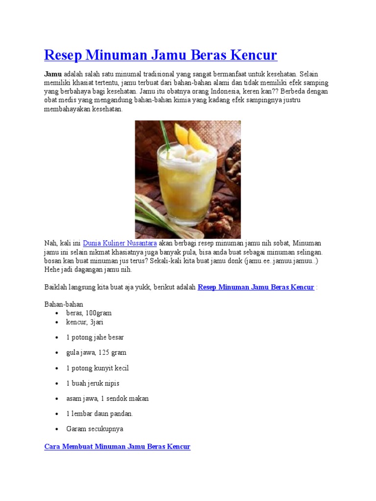 Resep Minuman Jamu Beras Kencur