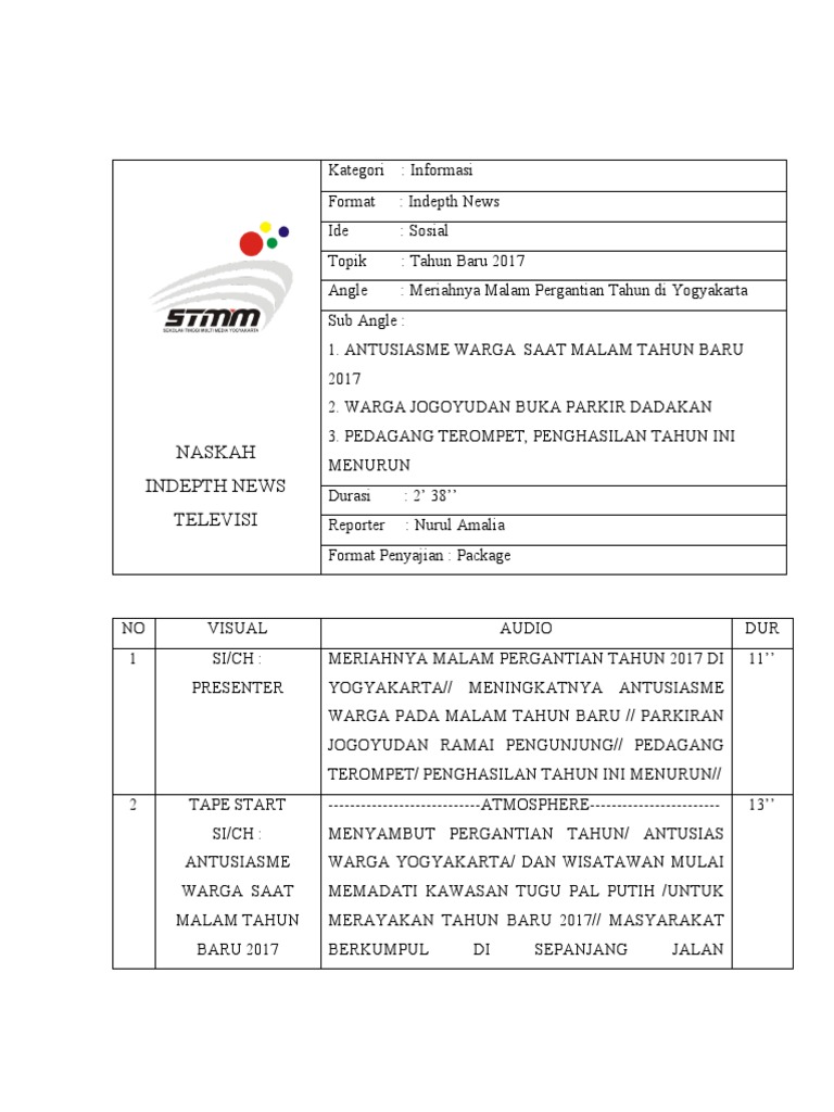 Contoh Naskah Reporter Berita - Contoh Naskah