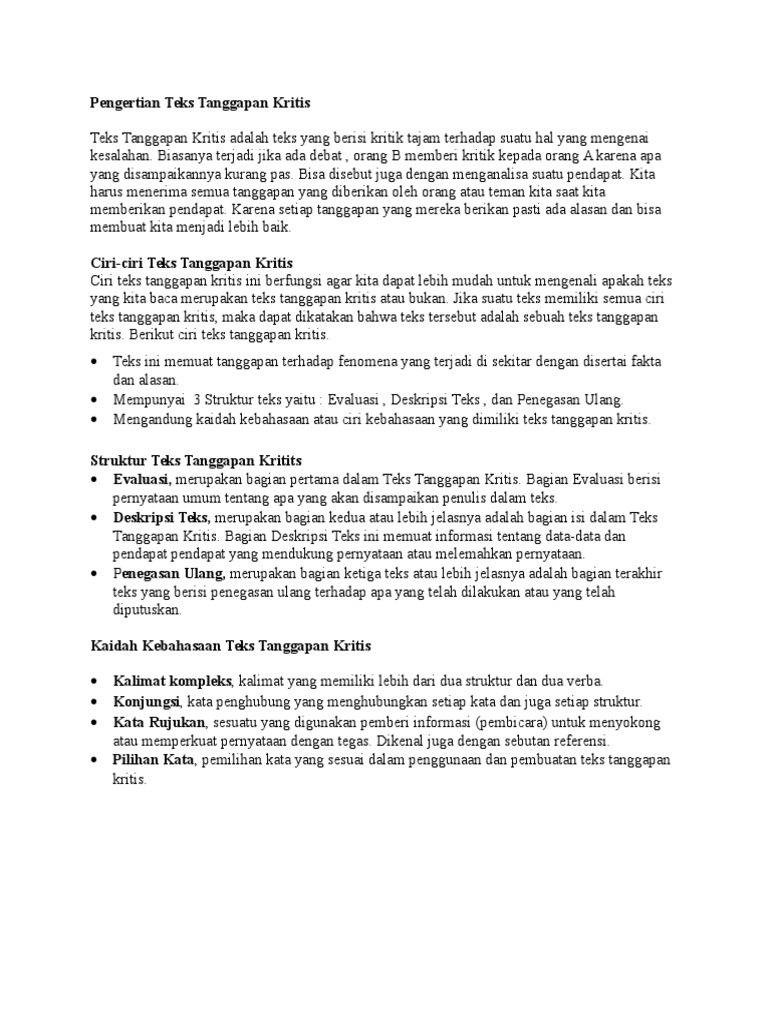 Fitur Bahasa, Definisi dan Struktur Teks Tanggapan Kritis - Kosongin.com