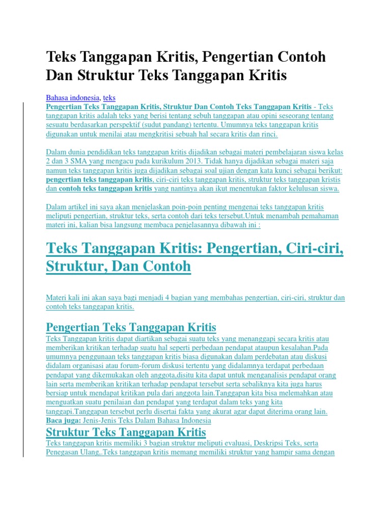DOC) Contoh Teks Tanggapan Kritis | fiola raynan - Academia.edu