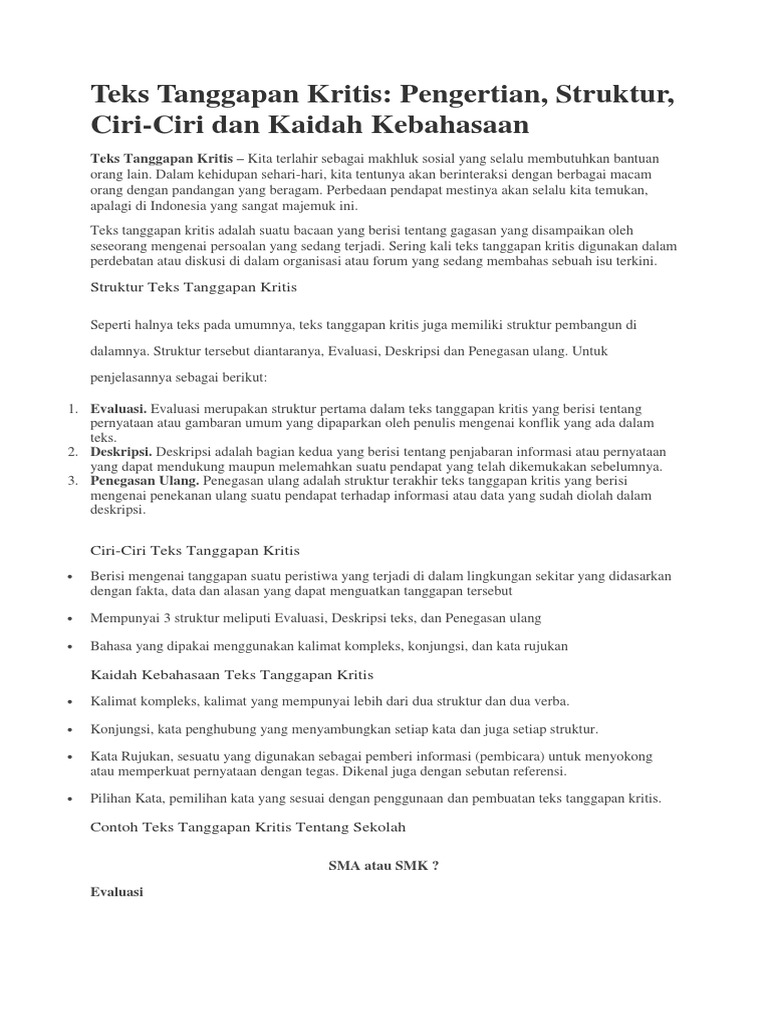 Struktur Teks Tanggapan Kritis Dan Pengertiannya