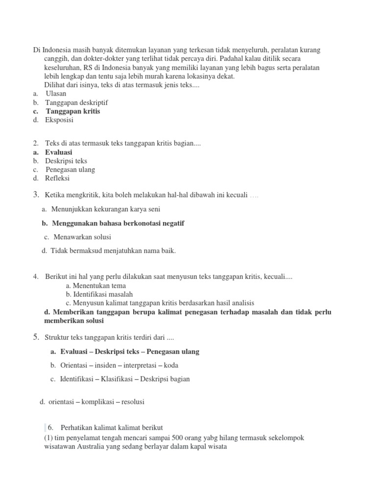 Bahan Soal Teks Tanggapan Kritis 1