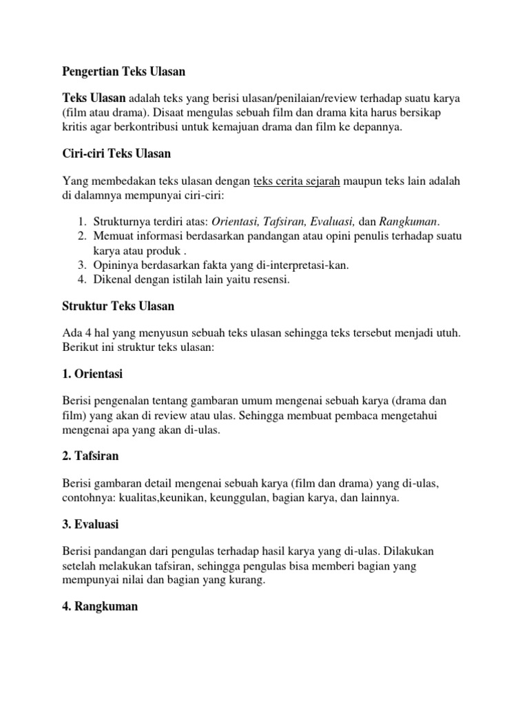Contoh Teks Ulasan Yang Sudah Diulas - Berbagai Teks Penting