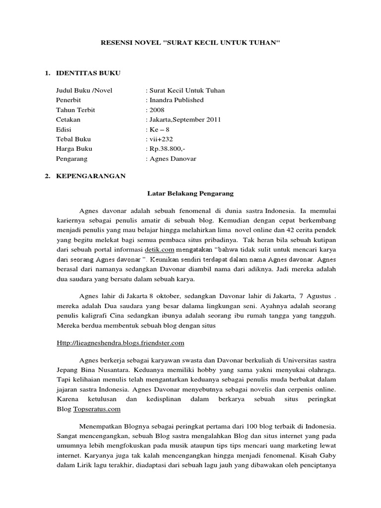 TEXT ULASAN NOVEL SURAT KECIL UNTUK TUHAN.docx - TEKS ULASAN STRUKTUR ORIENTASI TAFSIRAN PARAGRAF Surat Kecil untuk Tuhan adalah novel best-seller karya | Course Hero