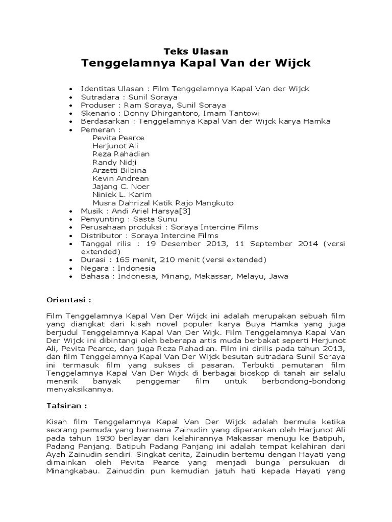 Teks Ulasan Tenggelamnya Kapal Van Der