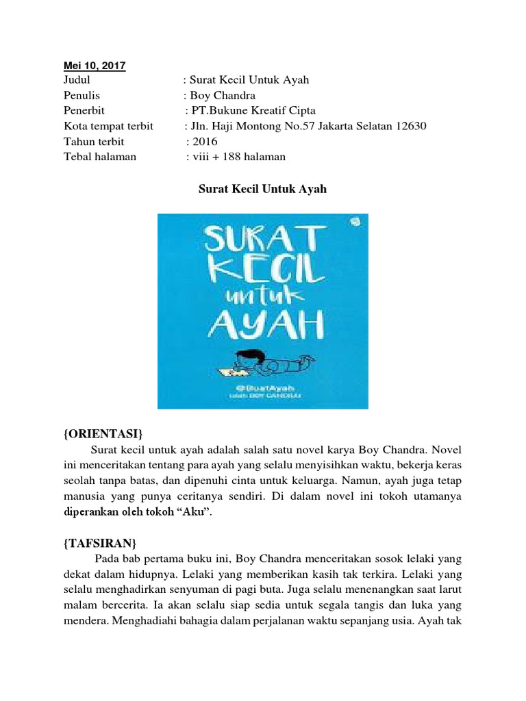 Contoh Teks Ulasan Novel Surat Kecil Untuk Ayah - Contoh Seputar Surat