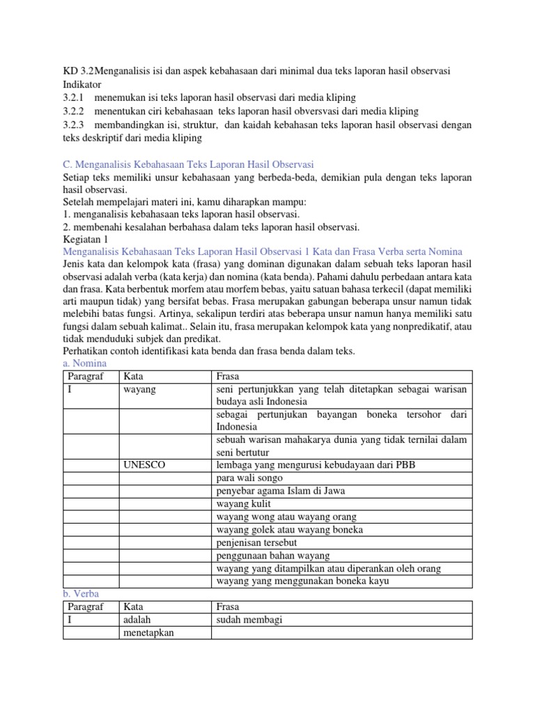 Bahasa Indonesia Kebahasaan Teks Laporan Hasil Observasi Bagian 1 Frasa Verba Dan Nomina – cute766