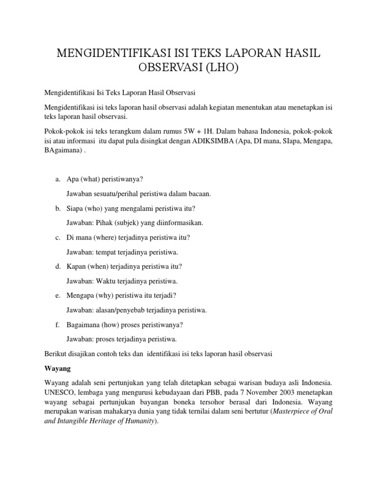 Mengidentifikasi Isi Teks Laporan Hasil Observasi (Lho): Wayang