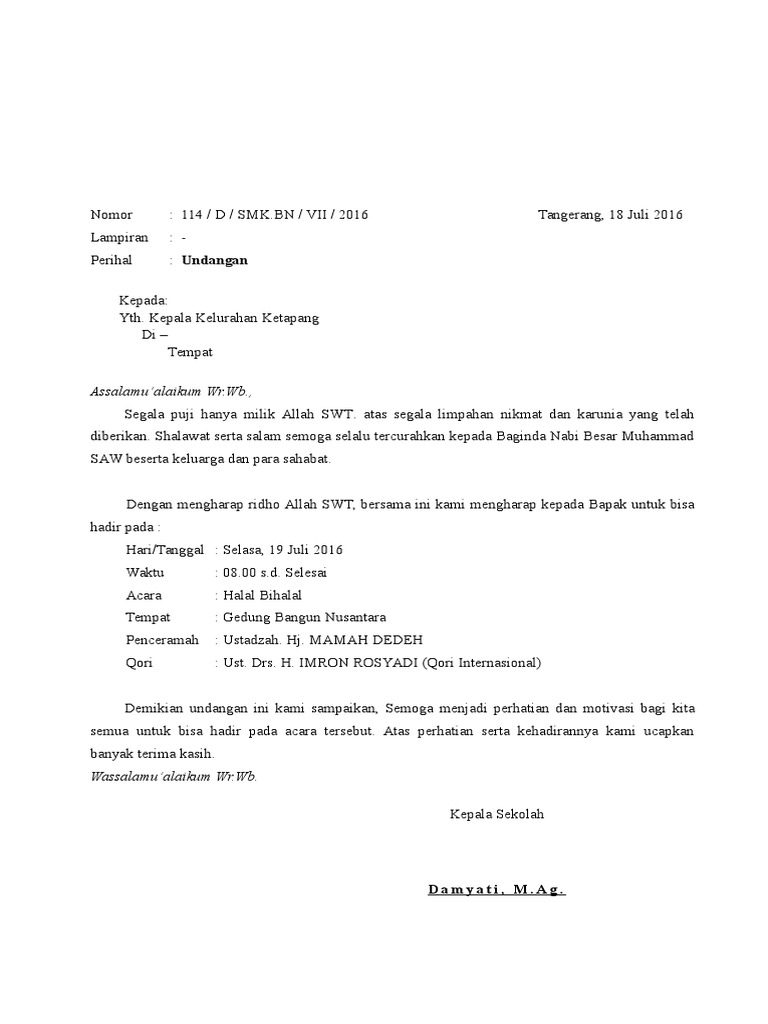 Surat Undangan Acara Halal Bihalal Sekolah - Guru Loyal