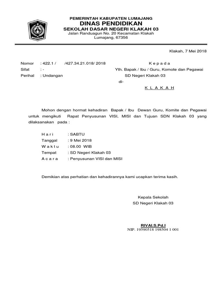 Contoh Surat Undangan Rapat Sekolah + Download .doc file - Nyantaidulu