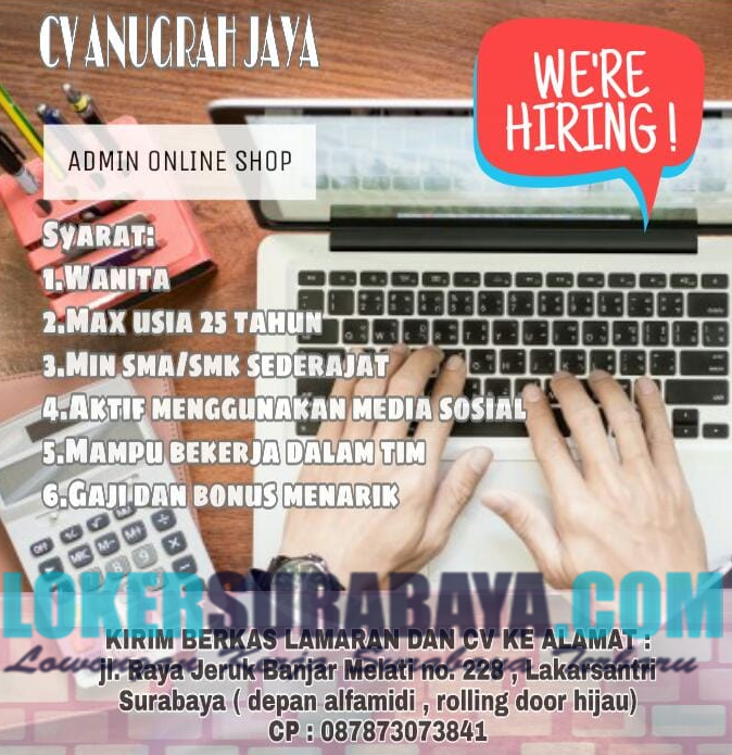 We Are Hiring at CV. Anugrah Jaya Surabaya Mei 2019 Terbaru - Lowongan Kerja Surabaya Oktober 2020 | Lowongan Kerja Jawa Timur Terbaru