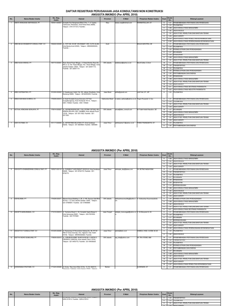 Daftar Badan Usaha Anggota Inkindo Yang Memiliki …image.kadin- .Daftar Badan Usaha Anggota Inkindo