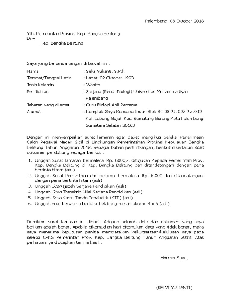 Surat Lamaran Dan Pernyataan Untuk Cpns