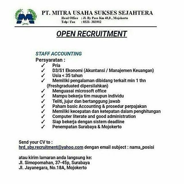 Lowongan Kerja PT. Mitra Usaha Sukses Sejahtera Januari 2017 - Lowongan Kerja Terbaru 2020
