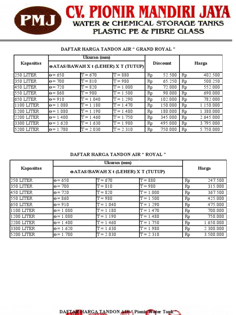 Tangki Air Grand Royal PE | CV PIONIR MANDIRI JAYA