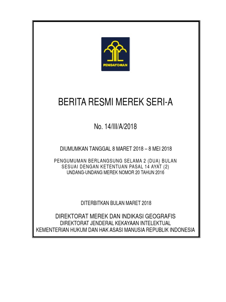 BERITA RESMI MEREK SERI-A - dgip.go.id .122 D002018009151 27/02/2018 25 RONEAG + LOGO 123 D002018009155 - [PDF Document]