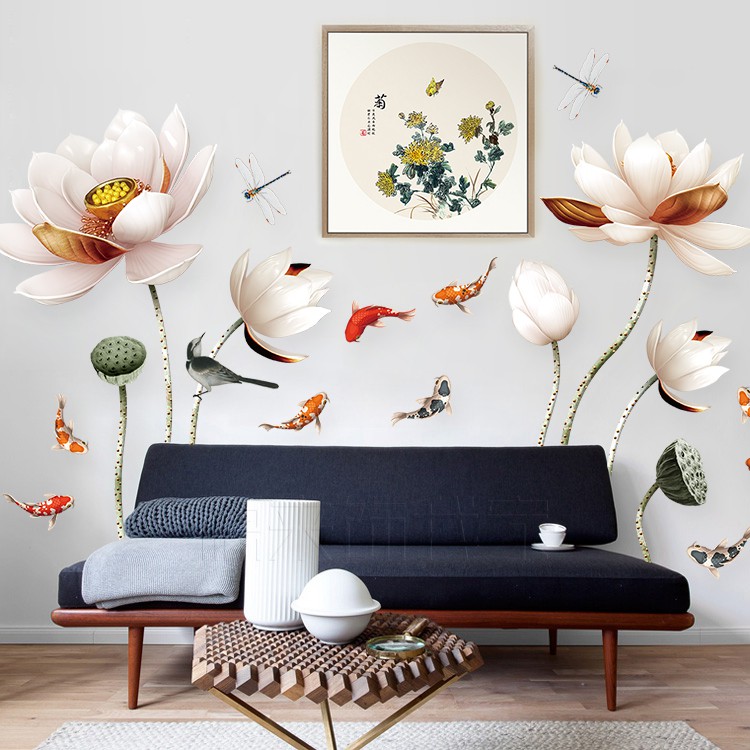 Gaya cina bunga teratai kecil 3d stereo stiker dinding, Teratai stiker lukisan t | Shopee Indonesia