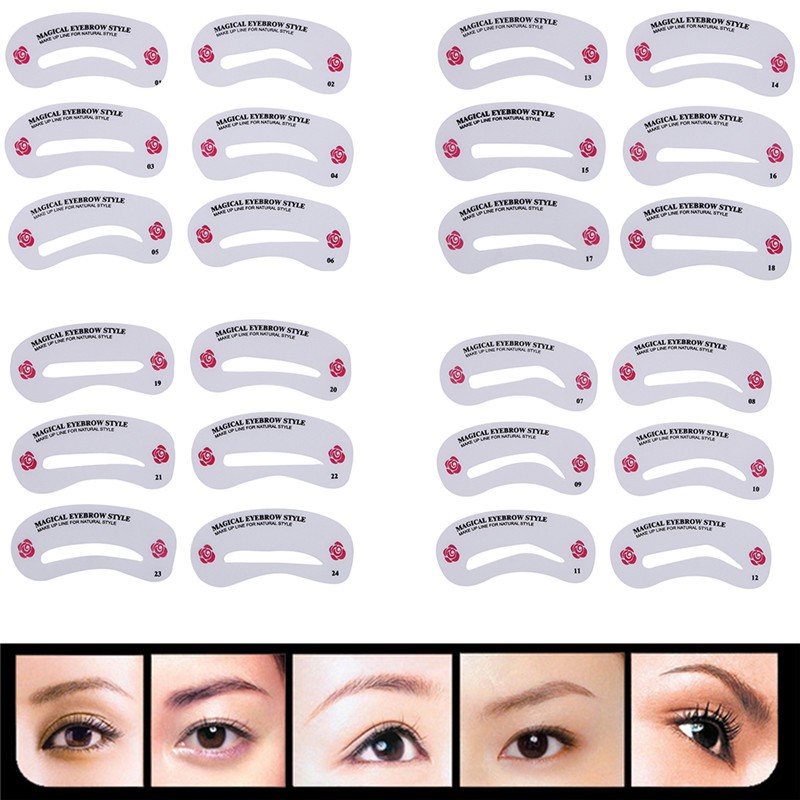 24 Styles Eyebrow Shaping Stencils Grooming Kit Makeup Shaper Set DIY Beauty Eyebrow Template Stencil Tool For Women|Eyebrow Stencils| - AliExpress