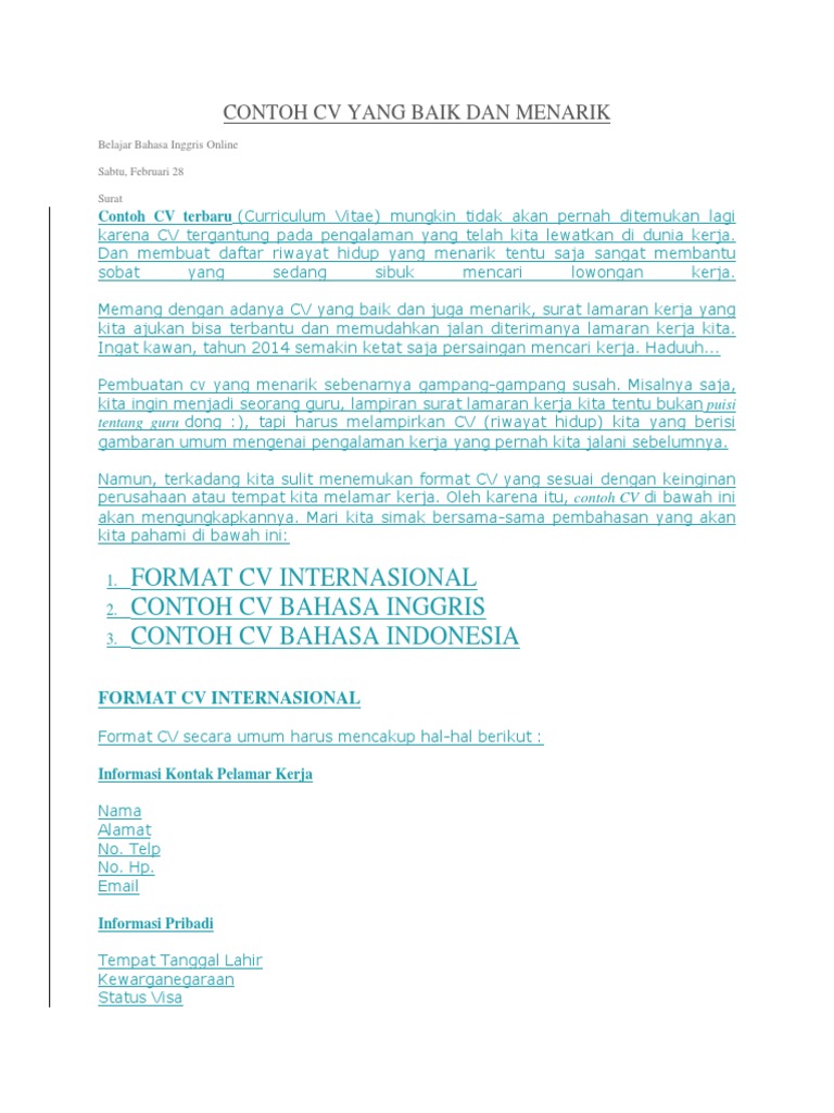 Contoh Cv Yang Menarik | Materi Pelajaran 2