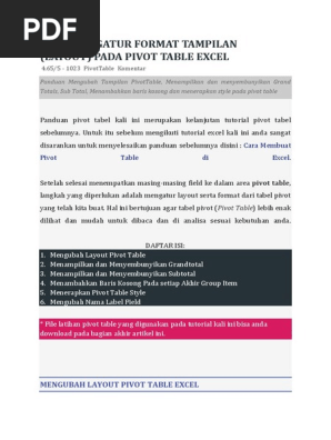 Cara Mengatur Format Tampilan (Layout) Pada Pivot Table Excel
