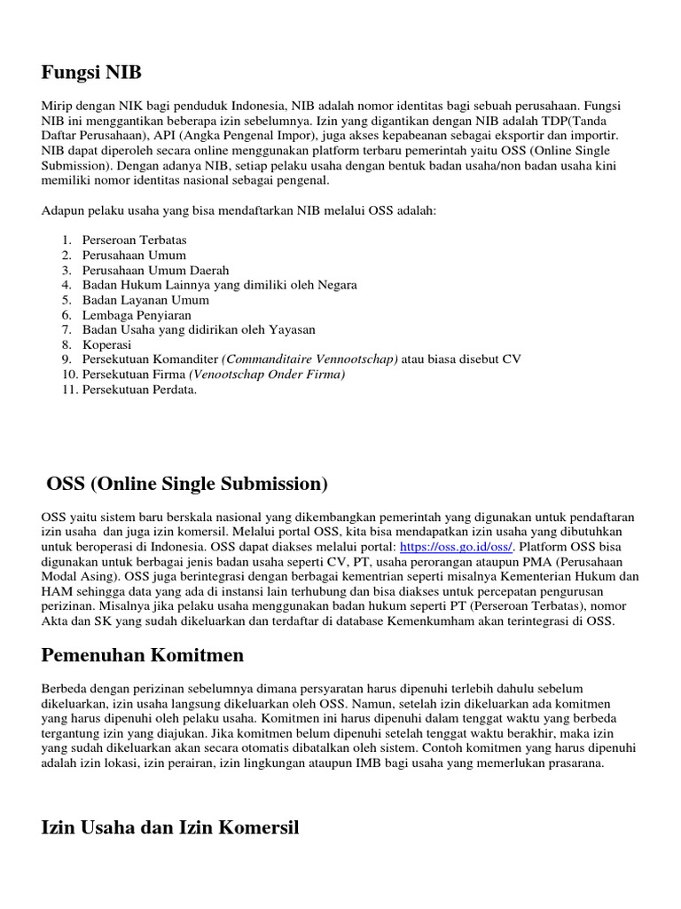 Fungsi NIB