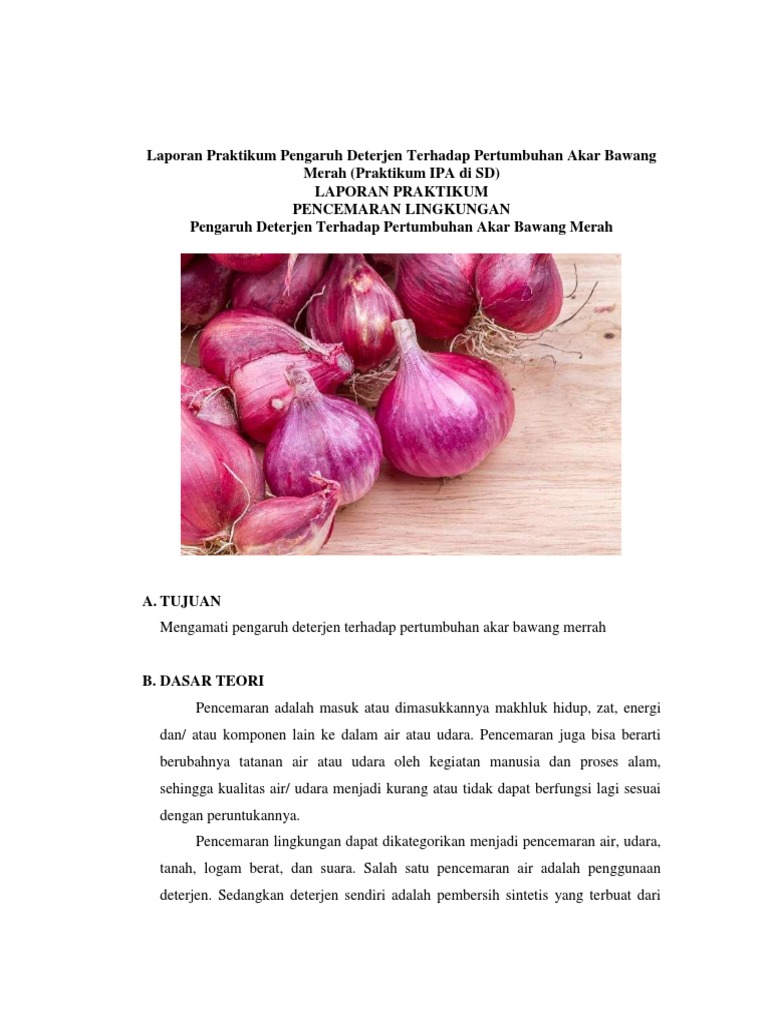 Laporan Praktikum Pengaruh Deterjen Terhadap Pertumbuhan Akar Bawang Merah (Praktikum IPA di SD) - MEDIA ILMU