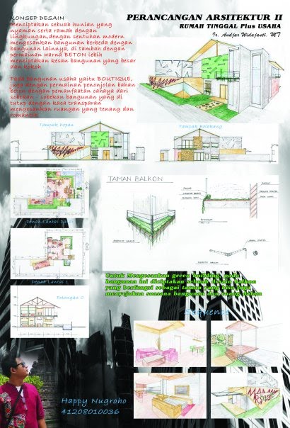 HAPPY NUGROHO ARCHITECT: Perancangan Arsitektur 2 : Rumah Tinggal plus Usaha, Beton Ekspose