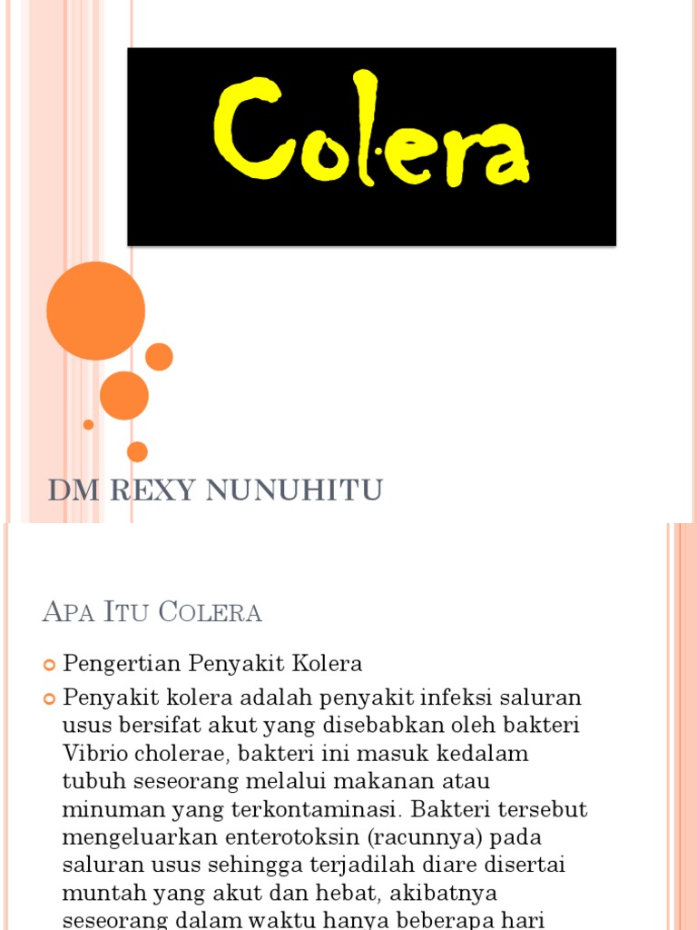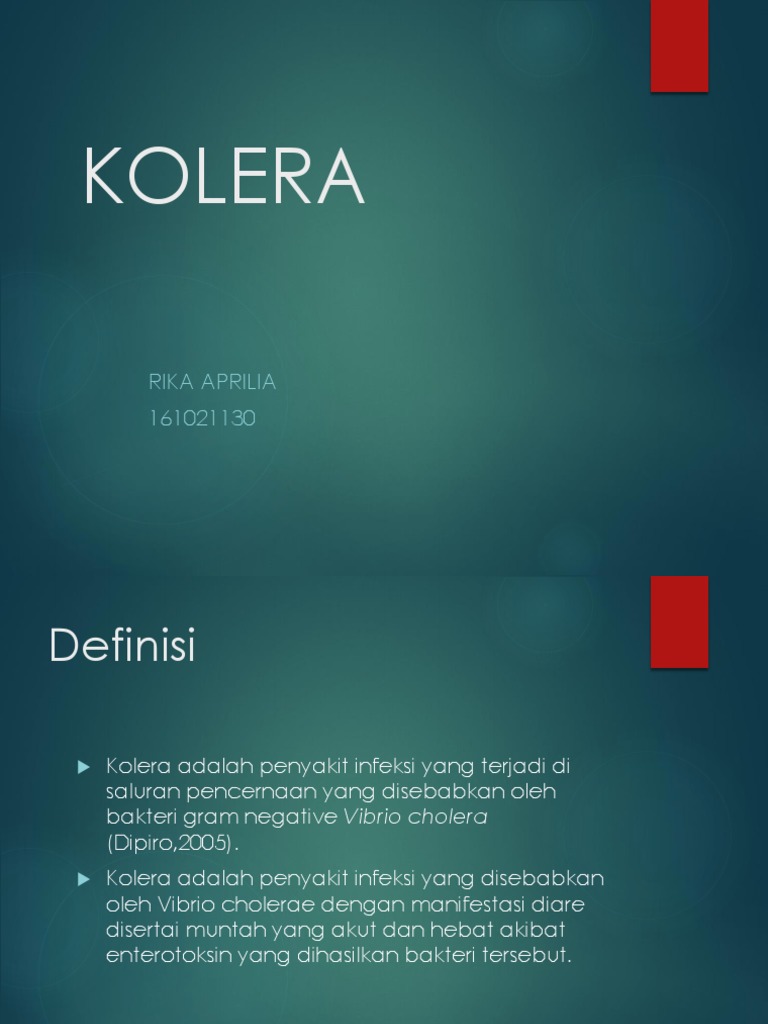 Penyakit kolera (cholera) adalah penyakit infeksi saluran usus bersifat akut yang disebabkan oleh bakteri Vibrio