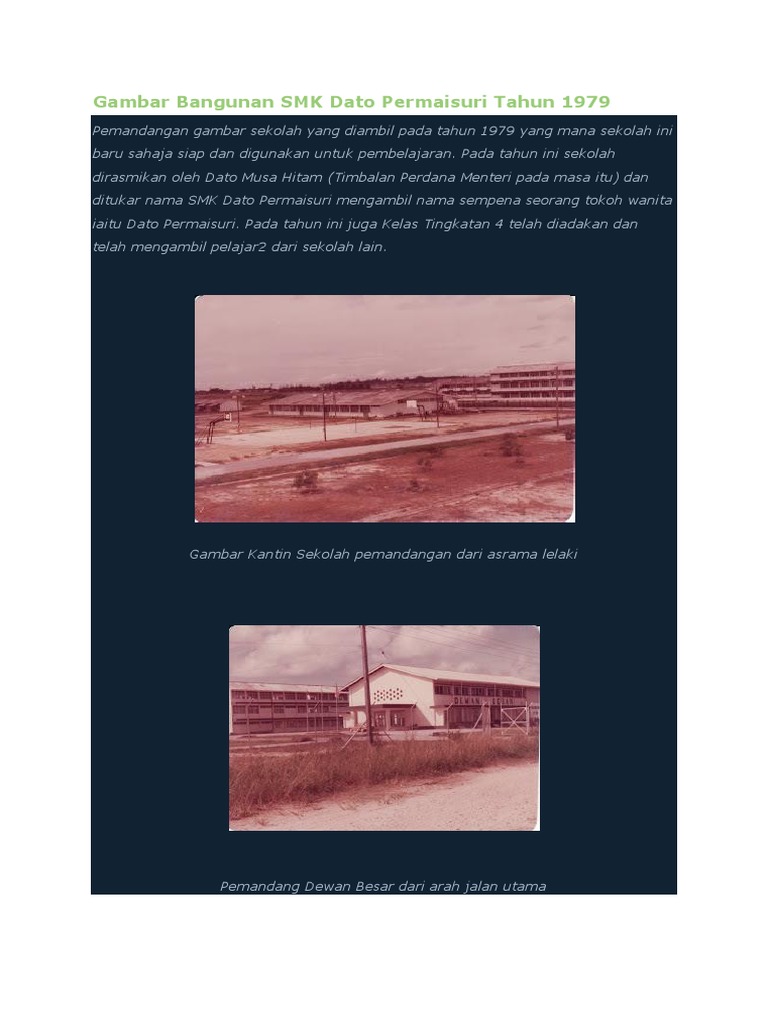 Gambar Bangunan SMK Dato Permaisuri Tahun 1979