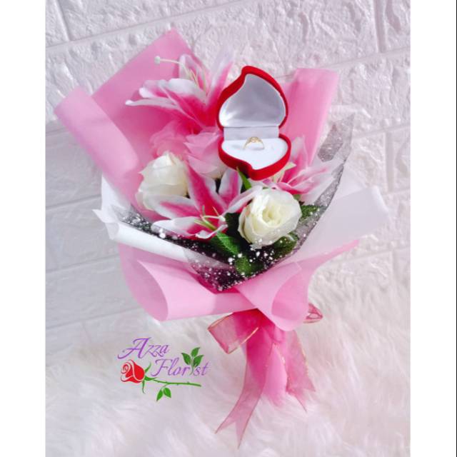 Buket box cincin/buket lamaran/buket bunga artificial/buket kado/buket bunga plastik | Shopee Indonesia