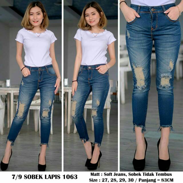Celana 7/9 Sobek Lapis SoftJeans Wanita Terbaru - Celana Jeans Wanita | Shopee Indonesia