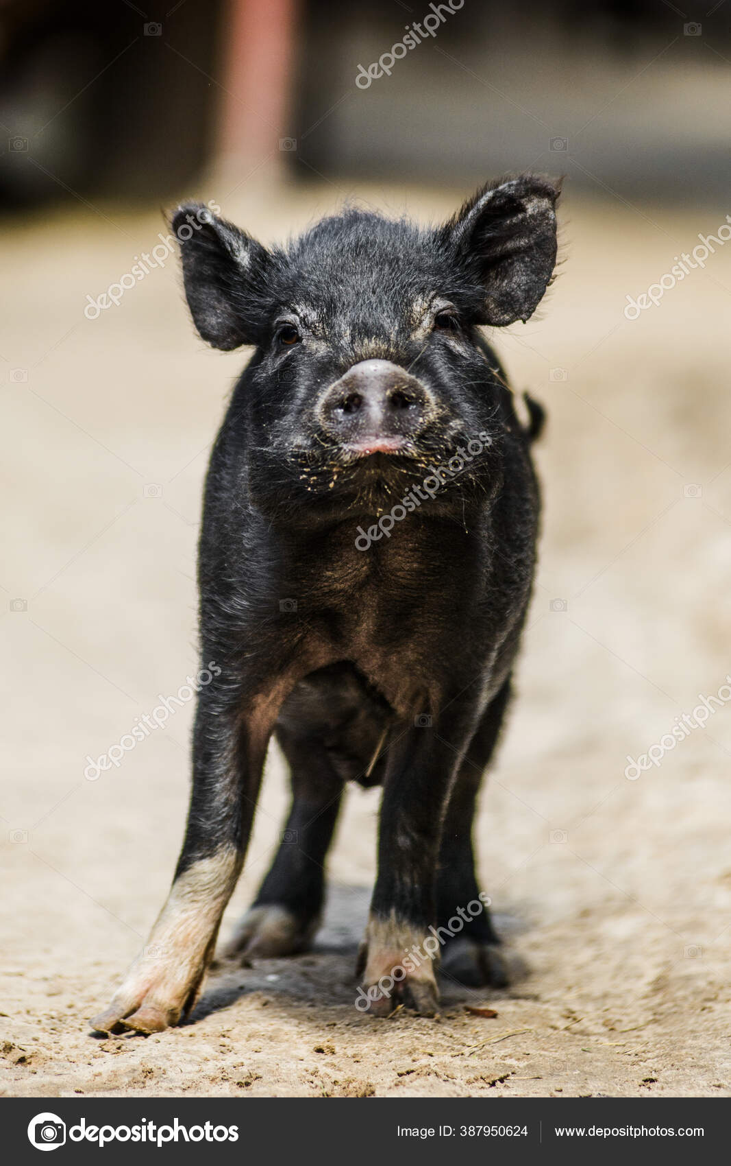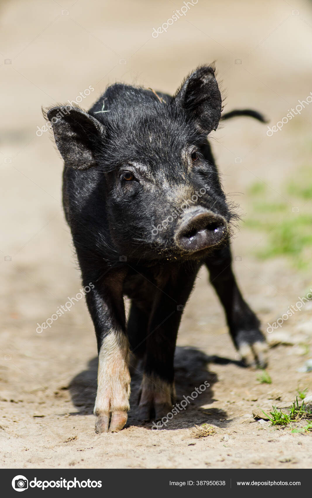 Babi Muda Berbulu Hitam Yang Lucu Peternakan Pedesaan — Stok Foto © olgagorovenko #387950638