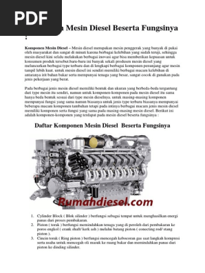 Bagian - Bagian Mesin Diesel Dan Fungsinya - Tehnik Mesin