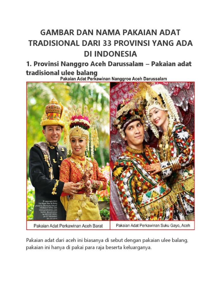 Gambar Dan Nama Pakaian Adat Tradisional Dari 33 Provinsi Di Indonesia - [DOCX Document]