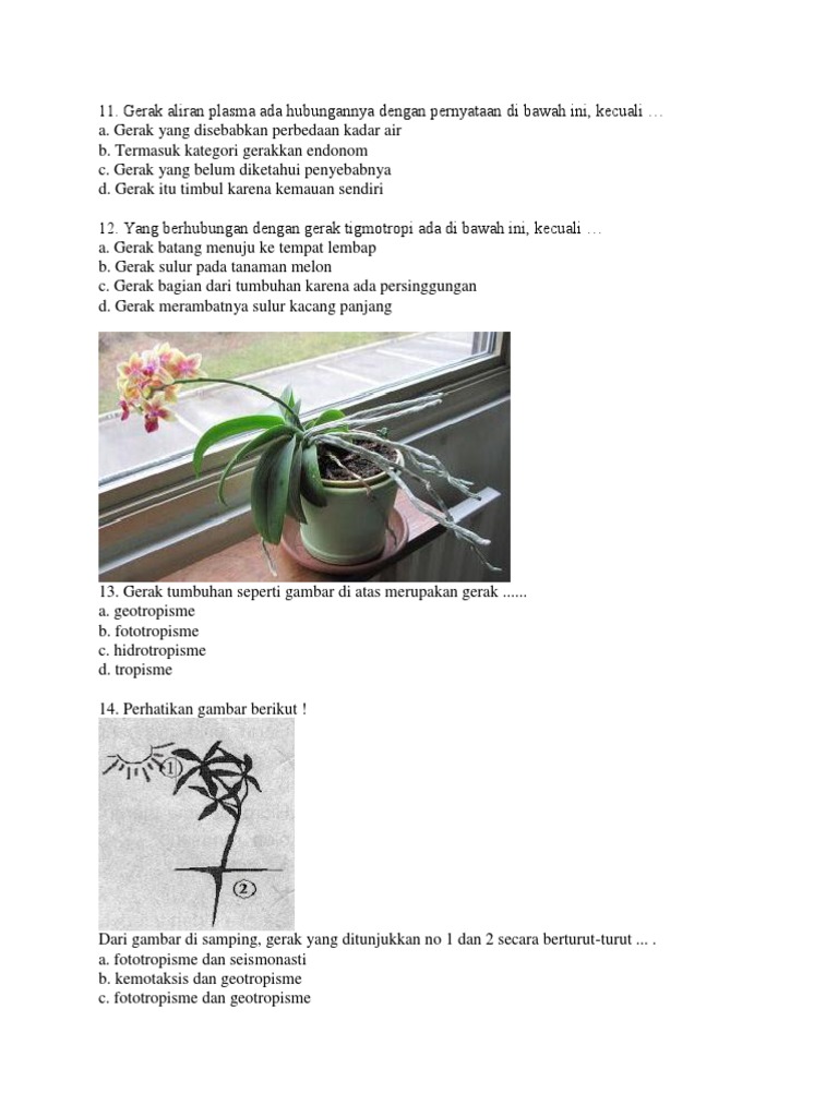 dari gambar diatas, gerak yang ditunjukkan no 1 dan 2 secara berturut turut adalah..A. fototropisme - Brainly.co.id