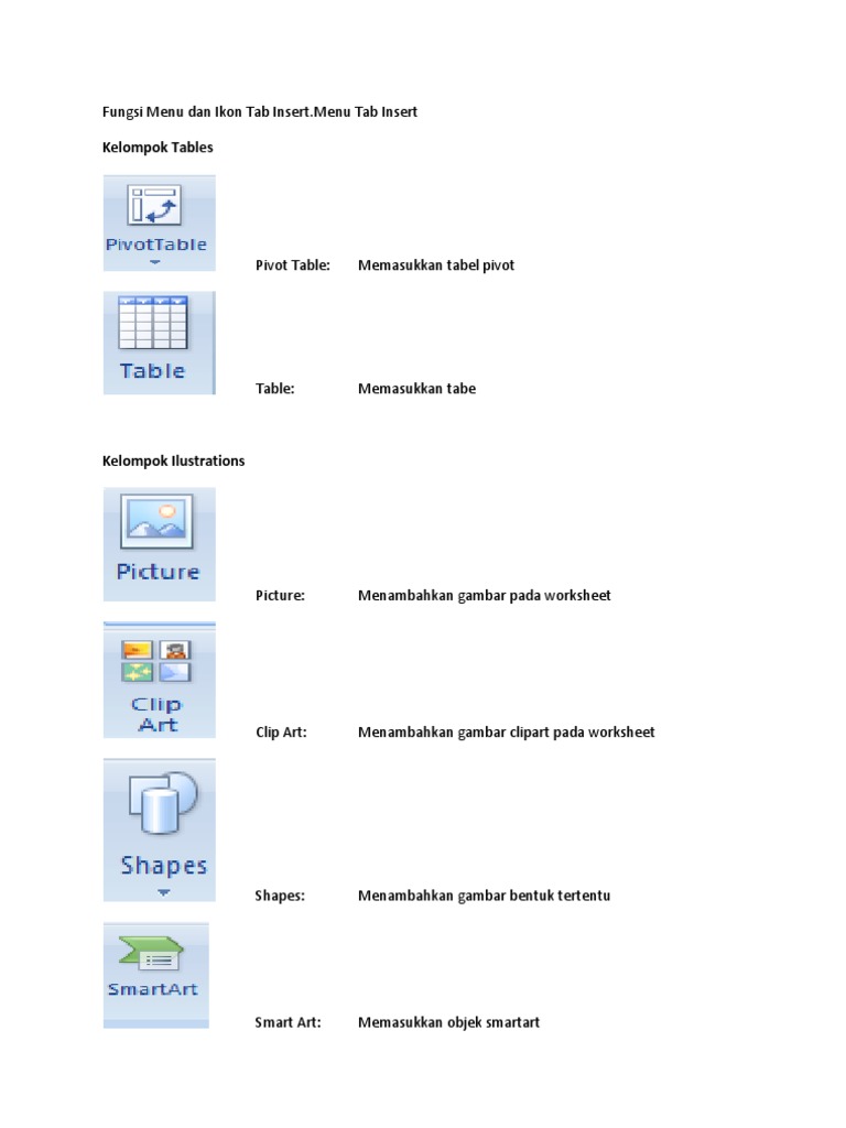 Tab Insert - Menu dan Fungsi Ikon yang ada di Microsoft Excel