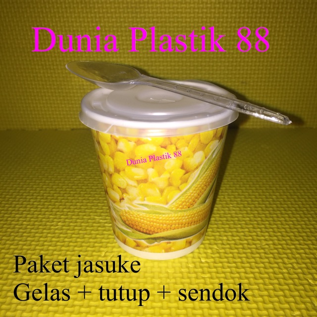 isi 50SET PAKET JASUKE gelas kertas paper cup 6,5oz + TUTUP + SENDOK jagung pop sweet corn popcorn | Shopee Indonesia