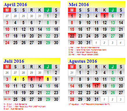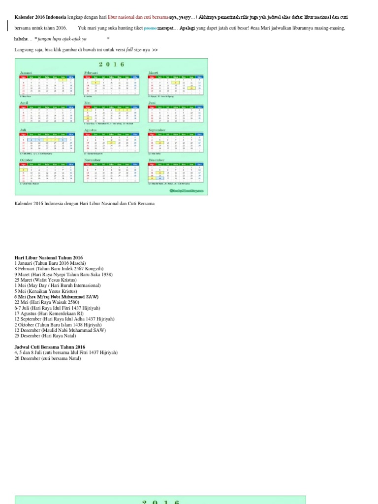 Kalender 2016 Indonesia Lengkap Dengan Hari Libur Nasional Dan Cuti Bersama