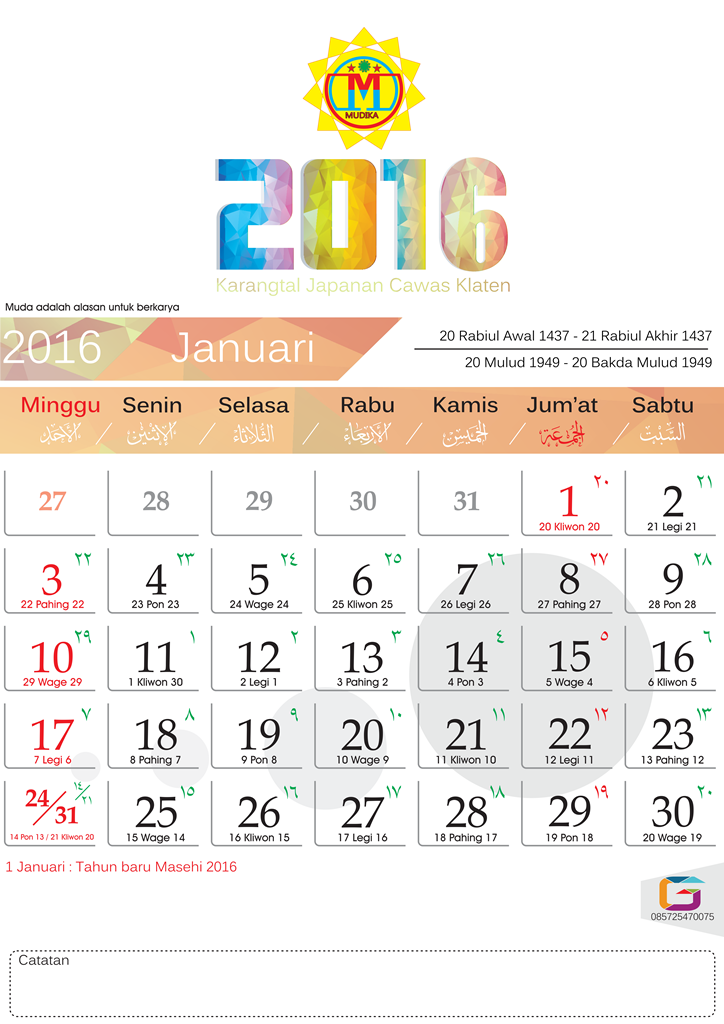 Kalender 2016 | .: Les Privat Bandung, Les Privat Cimahi, Les Jabodetabek | WA: 0857 2005 7019