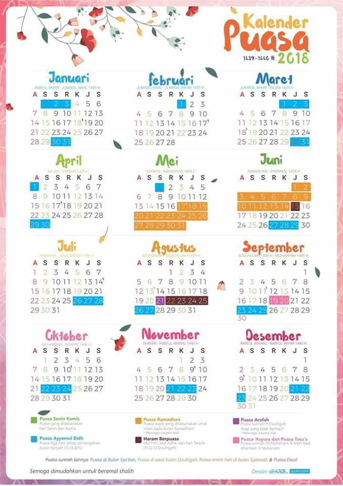 Kalender Islam 2018 - 1439 Hijriyah Lengkap (Download Gratis) | Pondok Islami - Menebar Berkah Berbagi Manfaat