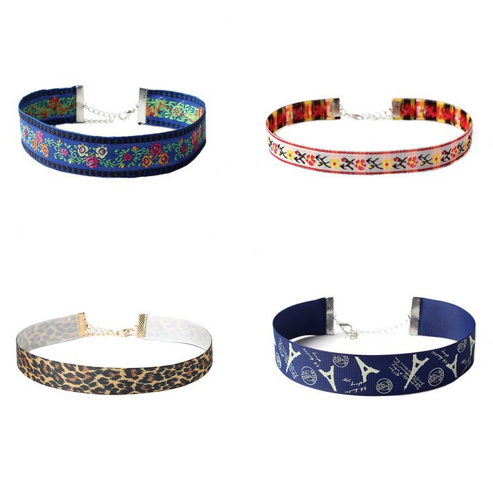 Set 4Pcs Kalung Choker dengan Bahan Bordir dan Gambar Motif Bergaya Retro | Shopee Indonesia