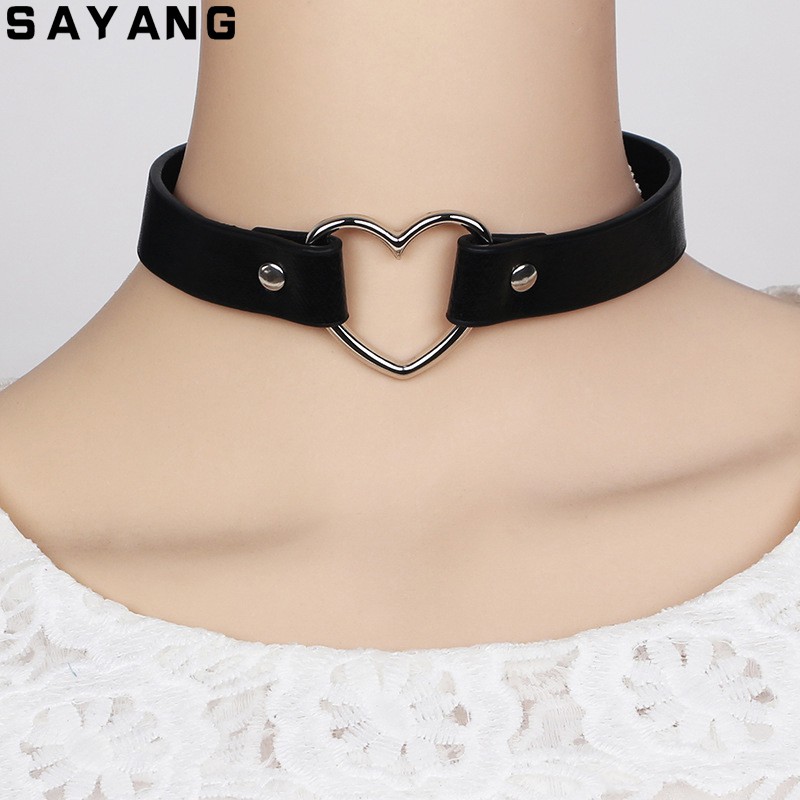 Bayar Di Tempat]Kalung Choker Bahan Kulit PU dengan Hiasan Rivet dan Gambar Hati Bergaya Punk | Shopee Indonesia