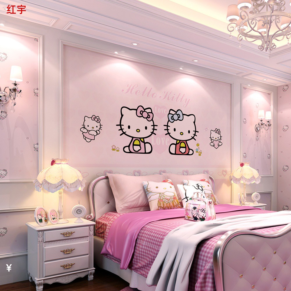 Gadis putri merah muda kartun kamar tidur wallpaper, Hellokitty Hello Kitty tema anak-anak wallpaper mural | Shopee Indonesia