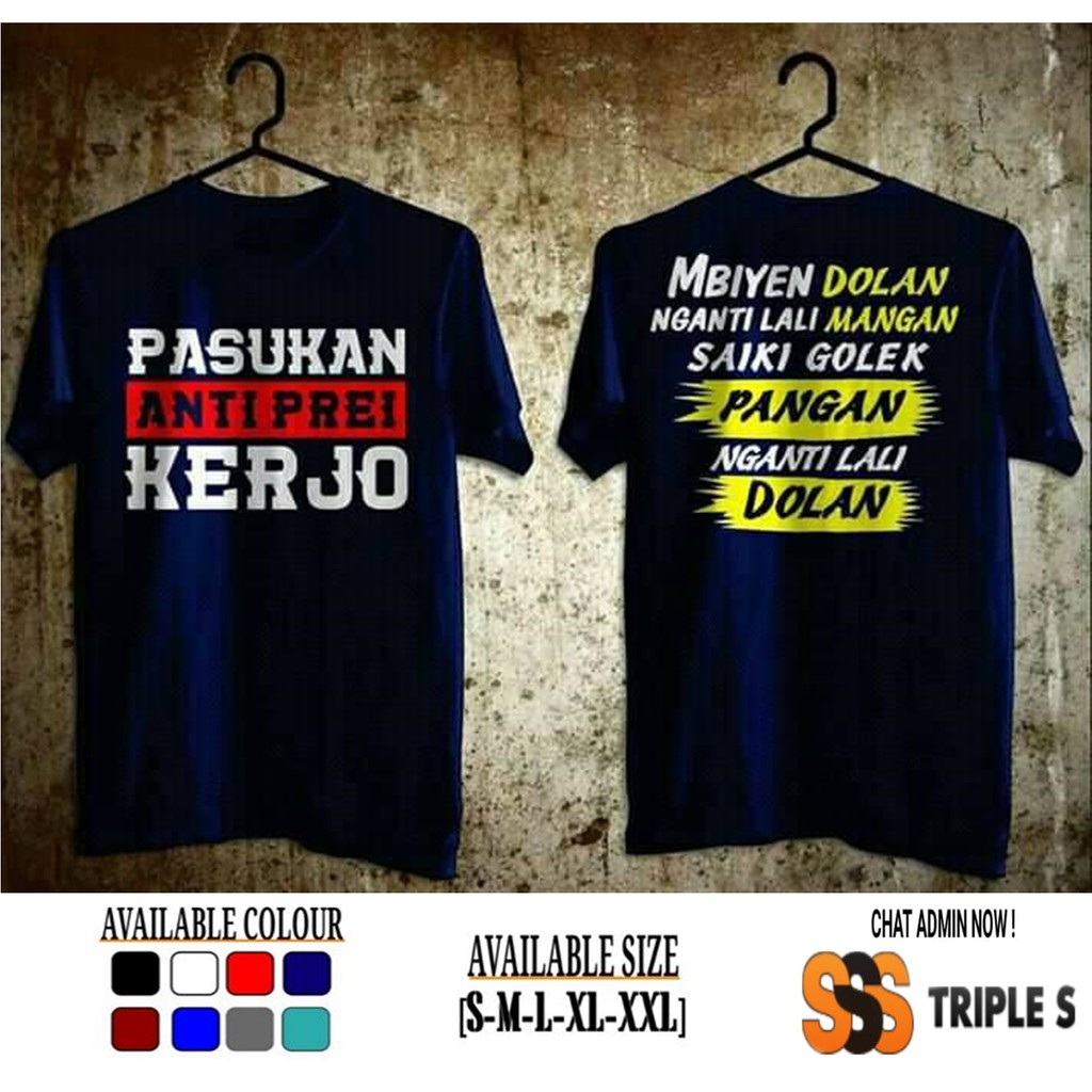 KAOS PASUKAN ANTI PREI KERJO MBIYEN DOLAN NGANTI LALI MANGAN SABLON 3 WARNA KAOS KATA-KATA ANTI PREI | Shopee Indonesia