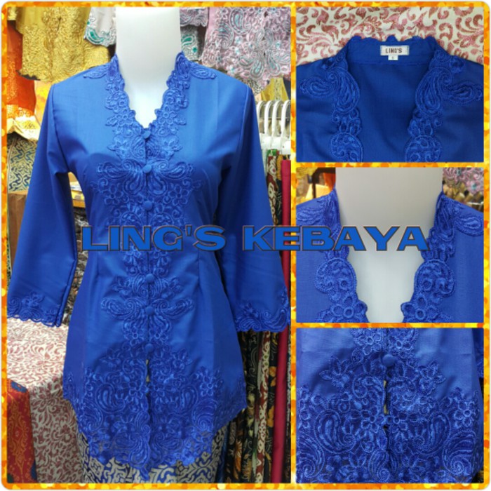 Kebaya Encim Modern Spesial Electric Blue / Biru Elektrik Tangan 7/8 | Shopee Indonesia